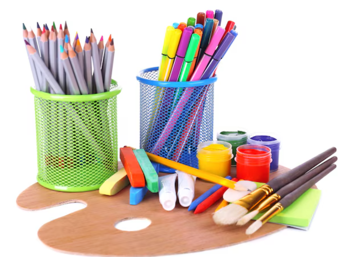 Full range of pens, pencils, notebooks, geometry boxes and drawing supplies.